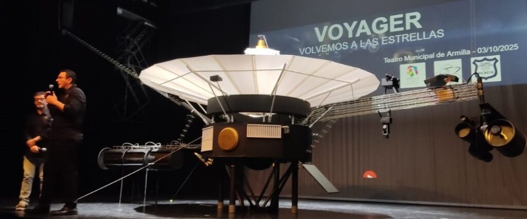 Desde el Aula de Astronomía de Armilla (Granada) hemos querido rendir un homenaje a lo que suponen las misiones Voyager que la NASA lanzó en 1977: una ambiciosa misión de exploración de los planetas exteriores de nuestro Sistema Solar que nos hicieron comprender que aquellos lejanos mundos, poco más que pequeños puntos en los telescopios, eran en realidad mucho más fascinantes, complejos y sorprendentes de lo que nadie hubiese imaginado en aquellos momentos. Hoy, casi 50 años después del lanzamiento, y habiendo salido de la heliosfera, siguen suministrando información acerca de lo que se están encontrando en el medio interestelar.